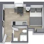 Die Apartments bietet einen Blick auf den Garten und verfügt über einen Wohnbereich, einen Balkon und eine Küche mit schalldichten Wänden. In den Unterkünften stehen Ihnen eine begehbare Dusche und eine getrennte Toilette zur Verfügung, um Ihren Komfort zu verbessern. Des Weiterem gibt es einen Haartrockner, Morgenmäntel und Badelaken im Badezimmer.